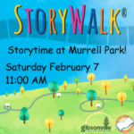 Please join us for a special Storytime as Gibsonville Parks and Rec officially opens the new Storywalk at Murrell Park! We will have songs and activities and then read a story before participants can follow the Storywalk around the Park!